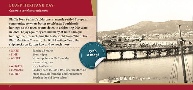Sunday is the day when one of Southland’s most historic towns, Bluff, will play their part in Southland Heritage Month.