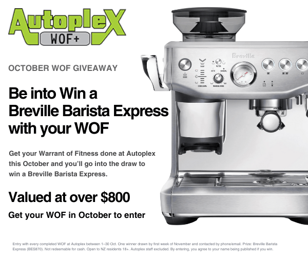 During October Autoplex is giving away a new Breville coffee machine to a lucky customer that comes in for a WOF.