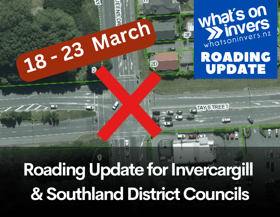 - Rowley Road (Tuatapere) (24 March – 4 April) – Closed for culvert replacement, with alternative dates 31 March – 11 April.