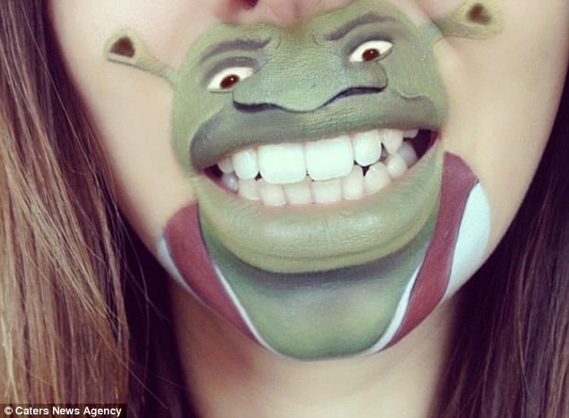 Talented make-up artist Laura Jenkinson has spent the last year using her chin as a canvas, creating amazing images of popular cartoon characters using her mouth, teeth and lips.
