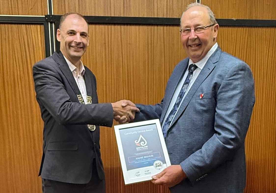 Otautau local Andre Bekhuis has been formally recognised for his tireless work and dedication to his community, receiving a Community Service Award from Southland District Council and the Wallace Takitimu Community Board.