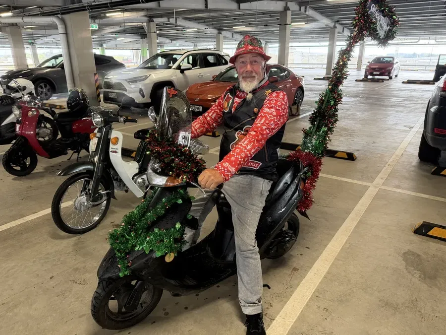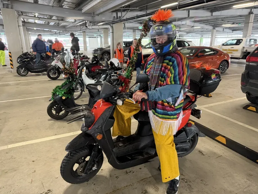 On Friday the 13th, 59 scooters — along with one impressive 5 seater motorbike with Invercargill Mayor Tom Campbell on board— completed a warm-up circuit from the Grace Street building site in South City to Invercargill Central. The colourful convoy travelled through town before gathering on the Level 4 car park at Invercargill Central, where the scooters were put on display for the public.
