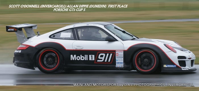 Well known local businessman Scott O’ Donnell and his team mate Allan Dippie took the winning slot in the race in their Porsche GT3 Cup S.