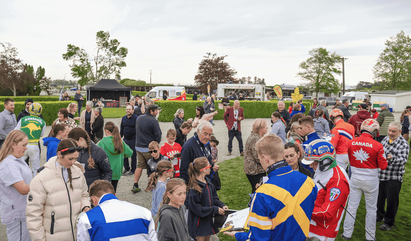 The Winton Harness Racing Club turned it on for the event, with the visiting drivers and their entourage arriving by bus to be greeted by Club President Ian Goodman before being piped onto the course. They proved hugely popular throughout the day, posing for plenty of photos with fans both young and old, while a special Fan Zone activity during the day saw plenty of posters distributed and autographs obtained.